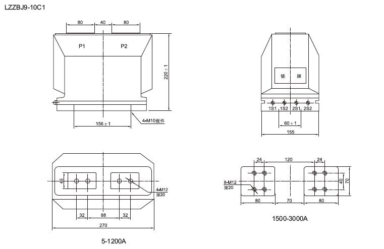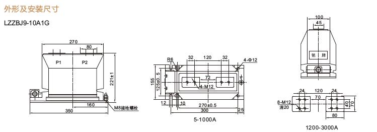 四、LZZBJ9-10A1G、LZZBJ9-10B1、LZZBJ9-10C1戶內電流互感器 外形及安裝尺寸