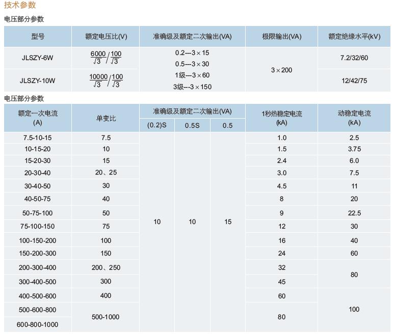 五、JLSZY-6W、JLSZY-10W戶外干式組合互感器變比參數(shù)