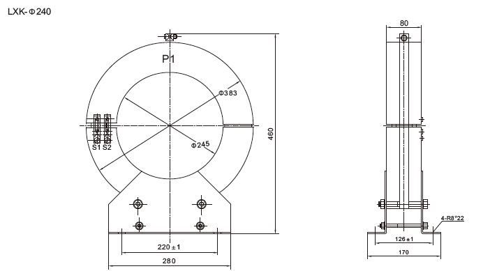 四、LXK-Φ80、LXK-Φ120、LXK-Φ140、LXK-Φ160、LXK-Φ200、LXK-Φ240零序電流互感器尺寸