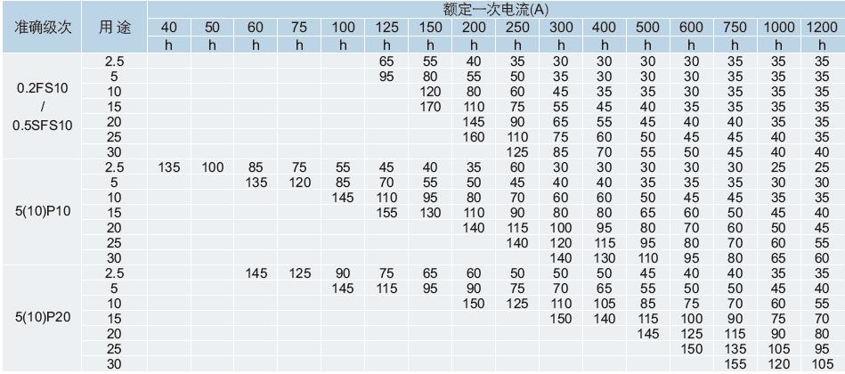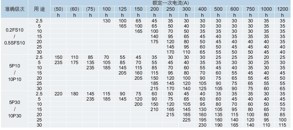 備注:1、二次電流為5A或1A,“()”表示該參數僅能滿足10P級要求;二次引線(5A時為4mm ,1A時為2.5mm )長度為3m,也可根據用戶要求