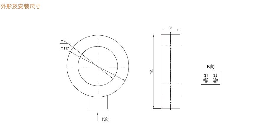 結構形式 :該電流互感器的鐵芯和二次繞組采用優質環氧樹脂澆注在PVC環形外殼內,性能穩定,體積小,重量輕,無需維護。適合安裝在環網開關柜內的進出線套管上,與開關箱體于一體,和諧美觀。互感器分單變比和雙變比兩種結構形式。