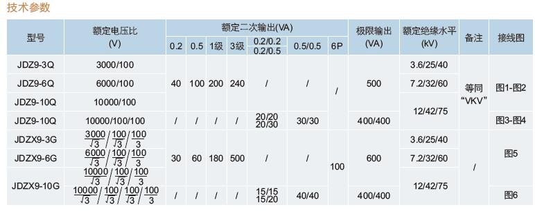 三、JDZ9-6Q,JDZ9-3Q、JDZ9-10Q技術(shù)參數(shù):