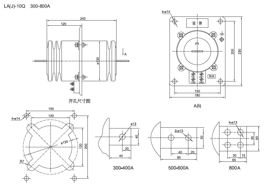 三、LA-10、LAJ-10Q穿墻式電流互感器產(chǎn)品外形及安裝尺寸