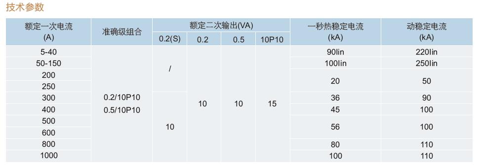 3、額定一次電流、準(zhǔn)確級(jí)組合、額定輸出及額定動(dòng)、熱穩(wěn)定電流見表
