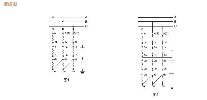 本型電壓互感器為半澆注式,體積小,氣候適應性強,互感器鐵芯采用帶有旁鐵軛的芯式結構,采用優質冷軋硅鋼片疊裝成長方形,露在空氣中,其一次、二次及剩余電壓繞組同心地繞在一起,用環氧樹脂澆注成型,三相澆注體固定在一起,一次繞組,A端為全絕緣,另N端為非全絕緣。其接線圖見圖1:根據安裝方式本產品分為A型和B型。A型產品為側面安裝,安裝孔在鐵芯夾件上,B型產品有安裝底座,靠底座來堅固產品。